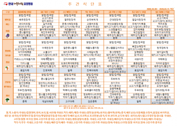 2026.03.09 ~ 2026.03.15 ½Ä´ÜÇ¥ÀÔ´Ï´Ù^^